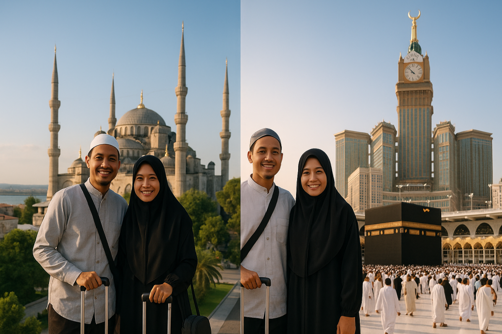 Paket Umrah Plus Turki 12 Hari: umrah di Makkah–Madinah plus wisata Istanbul–Bursa, termasuk tour Hagia Sophia, lalu ke Jeddah dengan hotel bintang 4–5 dekat Masjidil Haram dan Masjid Nabawi.