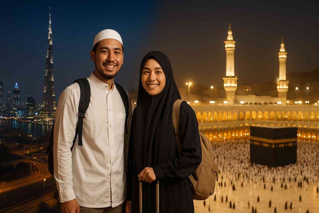 Paket Umrah Plus Dubai 10 Hari menggabungkan umrah di Makkah–Madinah dengan city tour Dubai: Burj Khalifa (luar), Dubai Marina, Desert Safari; hotel bintang 4 dekat Masjidil Haram dan Masjid Nabawi.